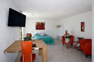Lovely new apartment from 2010, it has tea kitchen, bath, toilet and it has its own terrace facing south.