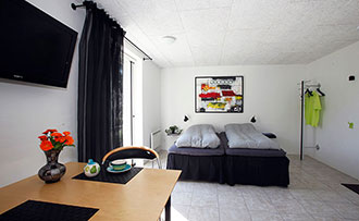 The apartment has a sleeping couch (110x190) so there is room for 1-2 extra beds for children.